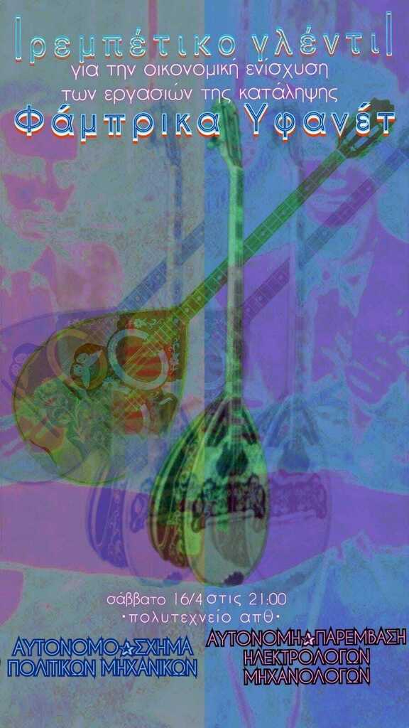 Ρεμπέτικο γλέντι για την οικονομική ενίσχυση των εργασιών που γίνονται στην κατάληψη Φάμπρικα Υφανέτ