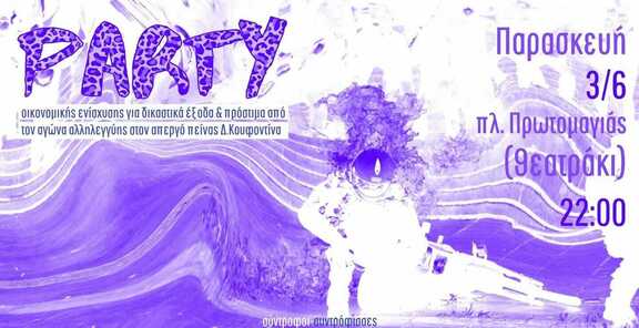 Party οικονομικής ενίσχυσης για δικαστικά έξοδα και πρόστιμα από τον αγώνα αλληλεγγύης στον απεργό πείνας Δ. Κουφοντίνα.