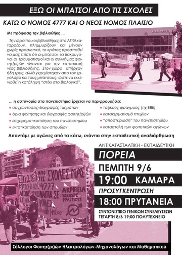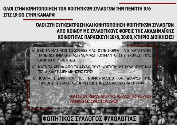 - Κάλεσμα σε φοιτητική πορεία ενάντια στην εκπαιδευτική αναδιάρθρωση και την καταστολή την Πέμπτη 9/6, 7 μ.μ. στην Καμάρα