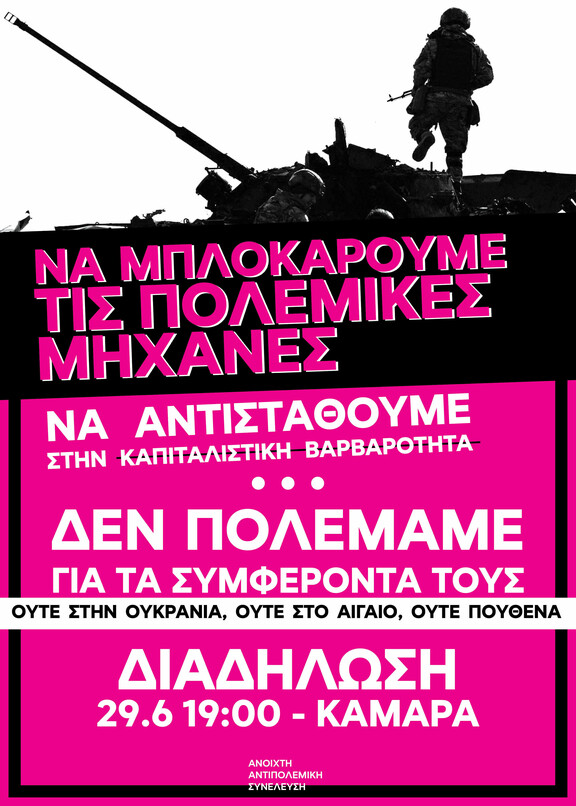 Ανοιχτή αντιπολεμική συνέλευση για την διοργάνωση της αυριανής διαδήλωσης.