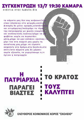 Καμία εμπιστοσύνη δεν έχουμε στην αστική δικαιοσύνη, αφού δεν είναι η πρώτη φορά που συγκαλύπτει και αφήνει ελεύθερους βιαστές ενώ προσπαθεί σταθερά και επανειλημμένα να υποβαθμίσει, να θάψει ή να χειριστεί με βάση τα πατριαρχικά στερεότυπά τις υποθέσεις αυτές. Γιατί εκείνο που οπλίζει τα χέρια των βιαστών και δολοφόνων, και ξεπλένει τα εγκλήματά τους είναι ένα ολόκληρο σύστημα, που έχει όνομα και λέγεται πατριαρχία, κράτος και καπιταλισμός. Οι δράστες γαλουχούνται, ενθαρρύνονται, οπλίζονται και στο τέλος καλύπτονται και δικαιολογούνται από τις κυρίαρχες αξίες και τους ίδιους τους μηχανισμούς. Γιατί η έμφυλη βία είναι συστημική βία και αποτελεί αναπόσπαστο κομμάτι της κρατικής και καπιταλιστικής βαρβαρότητα