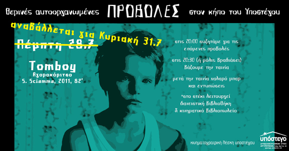 Την Κυριακή 31.7 η 3η και τελευταία για τον Ιούλιο αυτοοργανωμένη θερινή προβολή ταινίας στον κήπο του Υποστέγου.