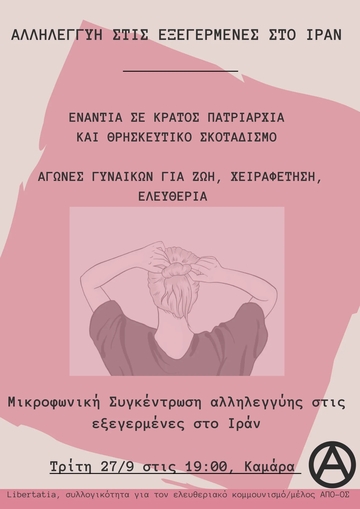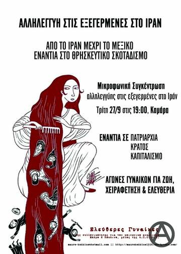 Μικροφωνική Συγκέντρωση αλληλεγγύης στις εξεγερμένες στο Ιράν, την Τρίτη 27/9 19:00 στην Καμάρα