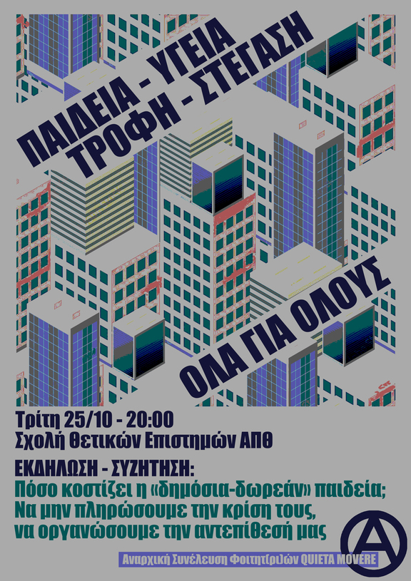 Εκδήλωση - Συζήτηση: Πόσο κοστίζει η «δημόσια-δωρεάν» παιδεία; Να μην πληρώσουμε την κρίση τους, να οργανώσουμε την αντεπίθεσή μας.