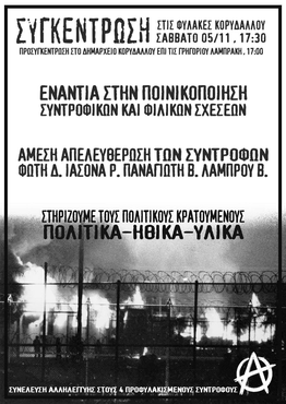 συνέλευση αλληλεγγύης στους 4 προφυλ/νους συντρόφους για τη συνδιοργάνωση της συγκέντρωσης στον Κορυδαλλό(5/11)