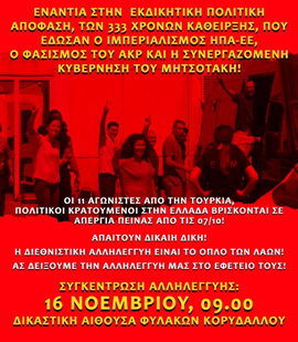 ΓΙΑ ΤΟΥΣ 11 ΑΓΩΝΙΣΤΕΣ ΑΠΟ ΤΗΝ ΤΟΥΡΚΙΑ, ΑΠΕΡΓΟΥΣ ΠΕΙΝΑΣ ΔΙΑΡΚΕΙΑΣ, ΕΝ ΟΨΕΙ ΤΟΥ ΕΦΕΤΕΙΟΥ ΤΟΥΣ ΣΤΙΣ 16 ΝΟΕΜΒΡΗ!