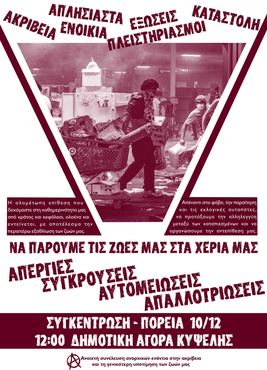Η ολομέτωπη επίθεση που δεχόμαστε στη καθημερινότητα μας από κράτος και κεφάλαιο, ολοένα και εντείνεται, με αποτέλεσμα την περαιτέρω εξαθλίωση των ζωών μας.