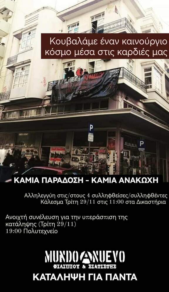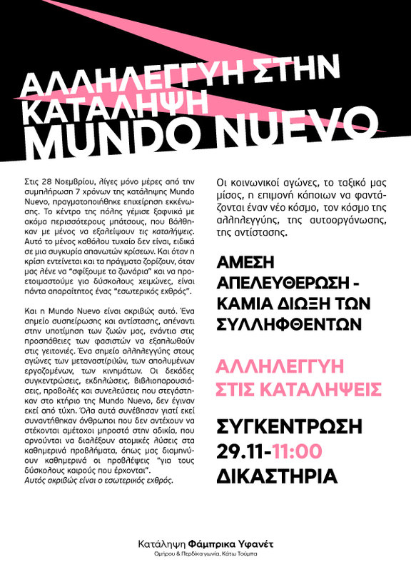 Συγκέντρωση για τους/ις συλληφθέντες/είσες της κατάληψης Mundo Nuevo