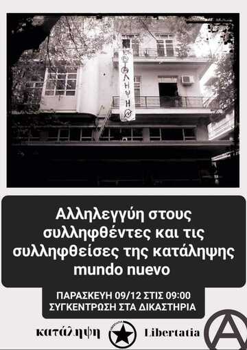 Συγκέντρωση αλληλεγγύης στους συλληφθέντες/συλληφθεισες της εκκένωσης της MUNDO NUEVO Παρασκευή 9/12 9:00πμ