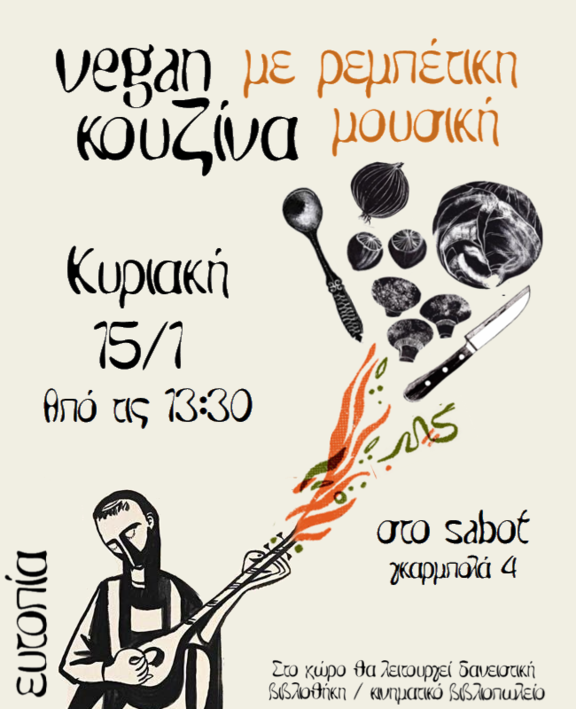 Συλλογική vegan κουζίνα και ρεμπέτικο γλέντι από την Ευτοπία για την οικονομική ενίσχυση του ελευθεριακού χώρου Sabot