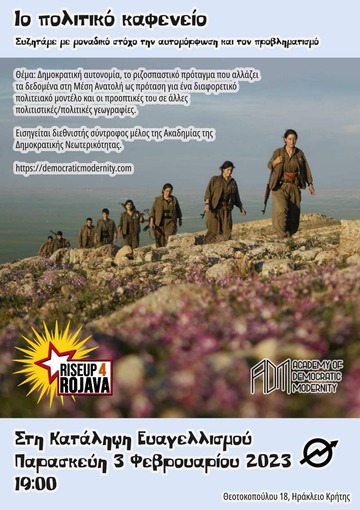 θέμα: Δημοκρατική αυτονομία, το ριζοσπαστικό πρόταγμα που αλλάζει τα δεδομένα στη Μέση Ανατολή ως πρόταση για ένα διαφορετικό πολιτειακό μοντέλο και οι προοπτικές του σε άλλες πολιτιστικές/πολιτικές γεωγραφίες.