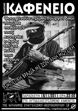 Ρεμπέτικη βραδιά με ζωντανή μουσική-Παρασκευή 18/11/2011-ώρα:23:00-στο αυτοδιαχειριζόμενο καφενείο