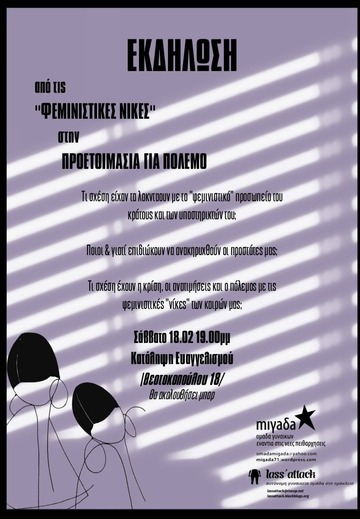 Εκδήλωση: Από τις "φεμινιστικές νίκες" στην προετοιμασία για πόλεμο - Μιγαδα | Σάββατο 18.02 στις 19.00 στη κατάληψη Ευαγγελισμού (Θεοτοκοπούλου 18,Ηράκλειο)