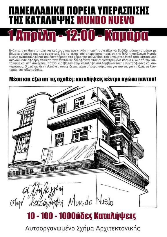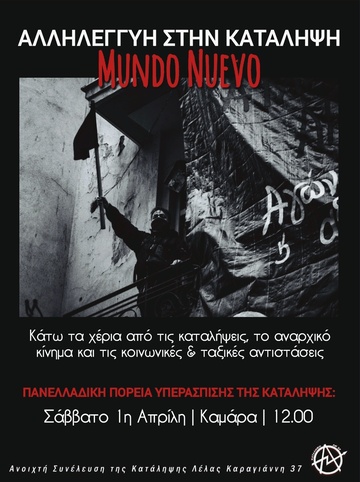 Πανελλαδική πορεία υπεράσπισης της κατάληψης Mundo Nuevo: Σάββατο 1η Απρίλη, Καμάρα, 12.00
