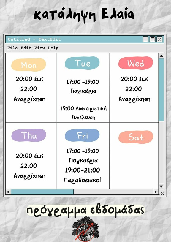 Πρόγραμμα Εβδομάδας στην Ελαία