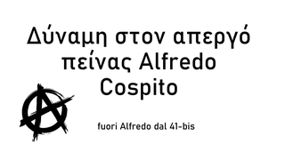 Δύναμη στον αναρχικό αναρχικό της πράξης κι απεργό πείνας (από την 20ή Οκτώβρη), Alfredo Cospito! Φωτιά στο καθεστώς εξόντωσης 41-bis και τη διαρκή ισόβια κάθειρξη! Φωτιά σε όλα τα κελιά! Sempre con l'anarchia!