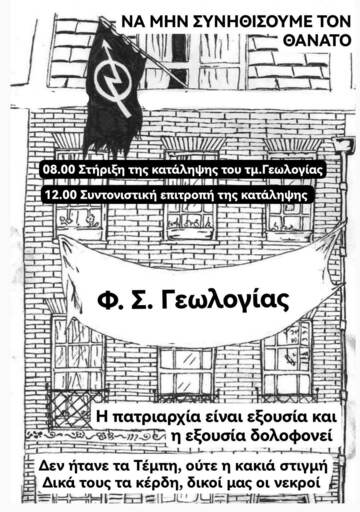 8:00 Κάλεσμα για στήριξη της κατάληψης του ΣΦ Γεωλογιας