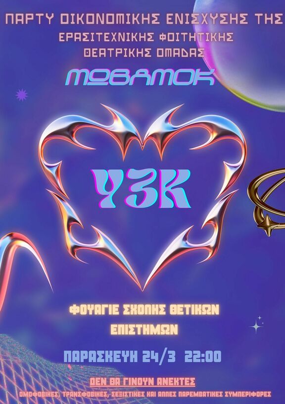 Η θεατρική ομάδα ΜωβΑμόκ διοργανώνει πάρτυ οικονομικής ενίσχυσης στη Σχολή Θετικών Επιστημών.