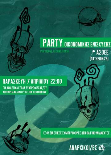 Party στην Ασοεε μετά τις 22:00 για δικαστικά έξοδα συντρόφου/ισσας που συνελήφθησαν σε συγκέντρωση αλληλεγγύης στον απεργό πείνας Δ.Κουφοντίνα.