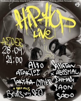 hip hop live οικονομικής ενίσχυσης για την κάλυψη των δικαστικών εξόδων των διωκόμενων-ης ισσας για την υπόθεση ' Σύντροφοι-Συντρόφισσες' την Παρασκευή 28 Απριλίου στην ΑΣΟΕΕ.