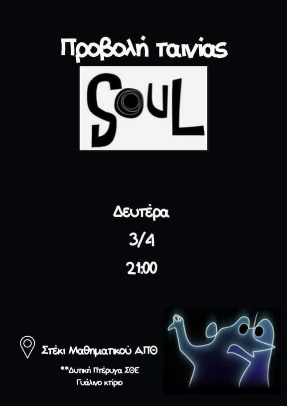 Δευτέρα προβολή ταινίας "Soul", στις 21:00 στο στέκι Μαθηματικού ΑΠΘ (Γυάλινο κτήριο , Δυτική πτέρυγα Σθε)
