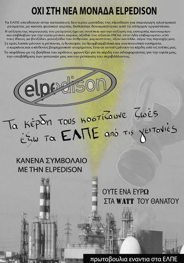 Το ρεύμα της Elpedison παράγεται από την επιβάρυνση των ζωών μας. Οι αρρώστιες μας είναι τα κέρδη τους.