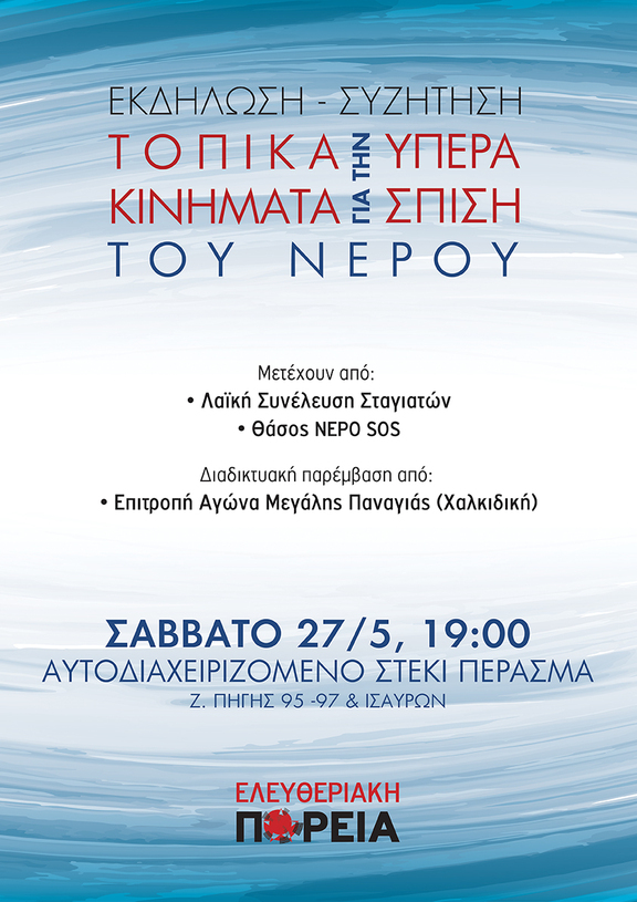 Εκδήλωση – Συζήτηση Τοπικά κινήματα για την υπεράσπιση του νερού