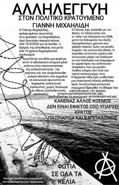[Ηράκλειο] Επόμενη Ανοιχτή συνέλευση Αναρχικών/Αντιεξουσιαστ(ρι)ών με θέμα την απεργία πείνας του Γ. Μιχαηλίδη