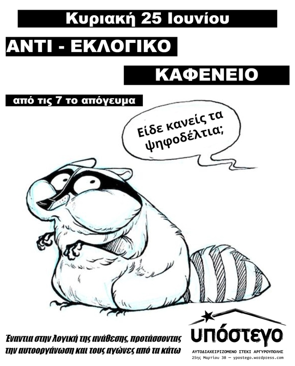 Αντιεκλογικό Καφενείο | Κυριακή 25/6 από τις 19:00 στον κήπο