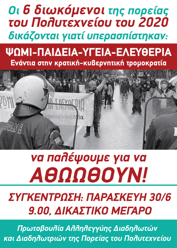 - Να αθωωθούν οι 6 διωκόμενοι του Πολυτεχνείου του 2020!