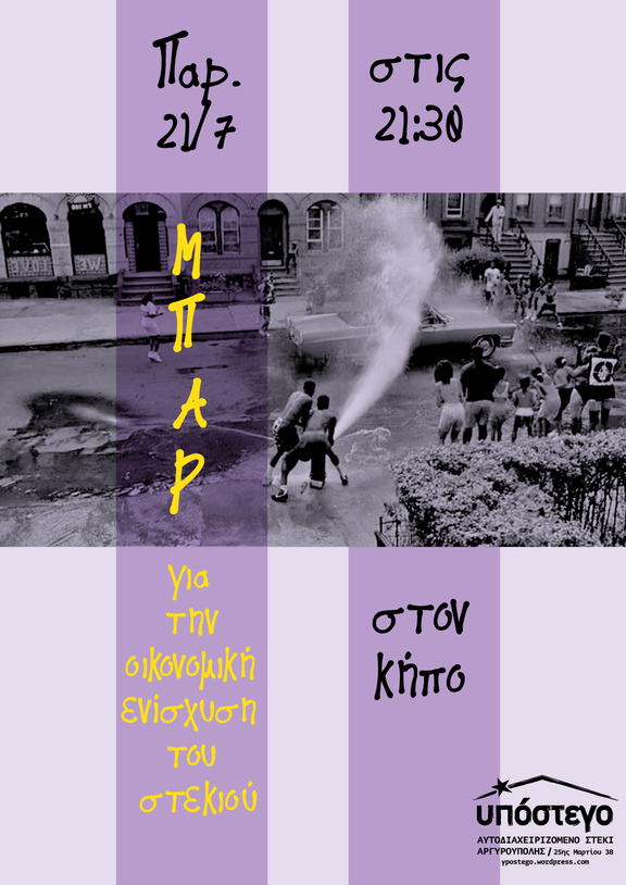 Παρ. 21.07 | 21:30 | Αυτοδιαχειριζόμενο bar | Τα έσοδα θα διατεθούν για την οικονομική ενίσχυση του χώρου | παραβιαστικές/σεξιστικές/εξουσιαστικές συμπεριφορές μη αποδεκτές