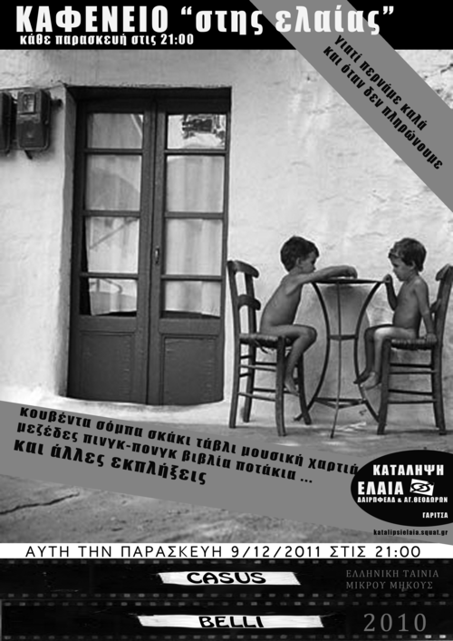 πολιτικό καφενείο κάθε παρασκευή στις 21:00 (9/12 προβολή ταινίας μικρ.μήκ. Casus Belli)