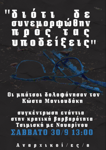 Για την δολοφονία του Κώστα Μανιουδάκη από την αστυνομία - Ο μόνος τρόπος να ζήσουμε, είναι να αγωνιστούμε, είναι να εξεγερθούμε