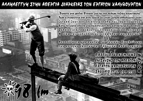 Πάρτυ οικονομικής ενίσχυσης απεργών εργατών Ελ. Χαλυβουργίας