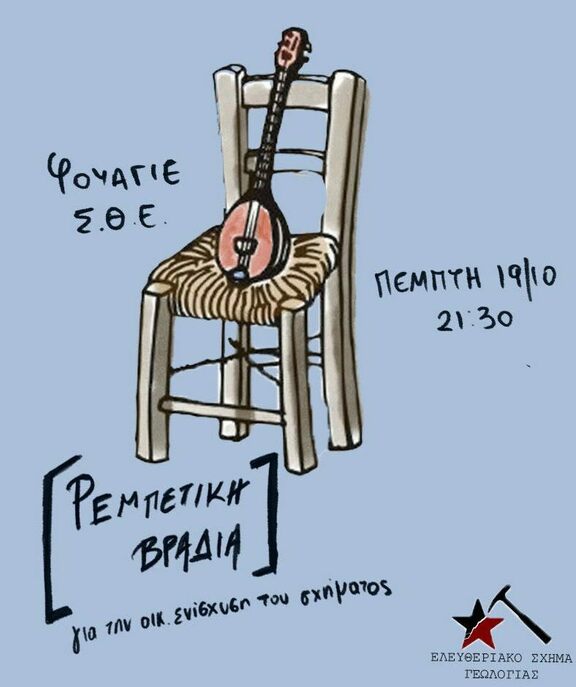 Ρεμπέτικη βραδιά για την οικονομική ενίσχυση του σχήματος, απο τις 21:30 και μετά στο φουαγιέ της ΣΘΕ.