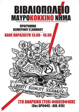 Λειτουργία του βιβλιοπωλείου Μαυροκόκκινο Νήμα στο Αναρχικό Στέκι Φιλοσοφικής (στον 8ο όροφο της σχολής, στην κατειλημμένη αίθουσα 819)