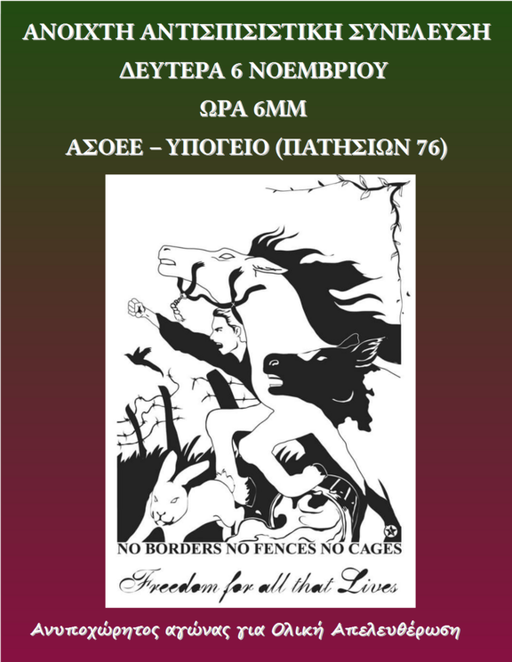 ΔΕΥΤΕΡΑ 6 Νοεμβρίου ώρα 18:00 στο υπόγειο της ΑΣΟΕΕ (Πατησίων 76)