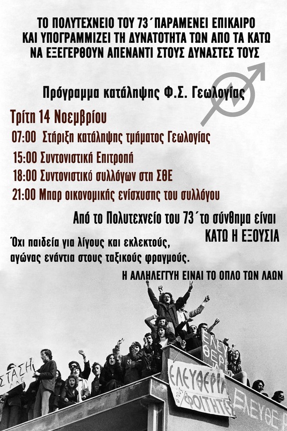 Από το Πολυτεχνείο του 73', το σύνθημα μας είναι ΚΑΤΩ Η ΕΞΟΥΣΙΑ