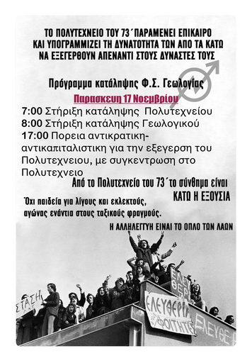 Από το Πολυτεχνείο του 73', το σύνθημα μας είναι ΚΑΤΩ Η ΕΞΟΥΣΙΑ