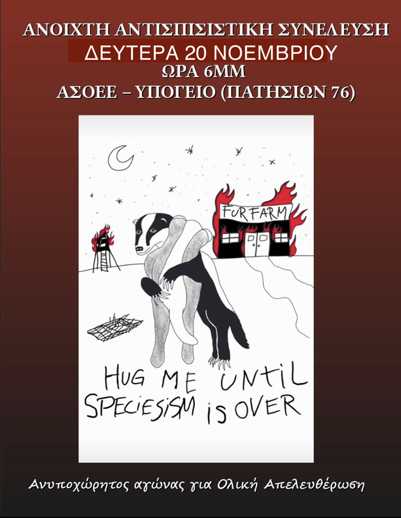 Θα συζητηθούν ζητήματα θεώρησης και δράσης ενάντια στη βιομηχανία γούνας, με άξονα την ολική απελευθέρωση.