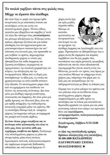 εν όψει της πανελλαδικής ημέρας δράσεων αλληλεγγύης στις καταλήψεις.