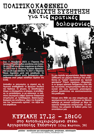 Πολιτικό Καφενείο-Ανοιχτή Συζήτηση για τις κρατικές δολοφονίες