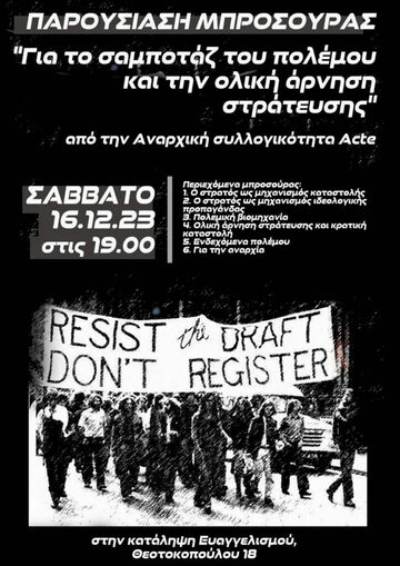 την ολική άρνηση στράτευσης" απο την αναρχική συλλογικότητα Acte,
