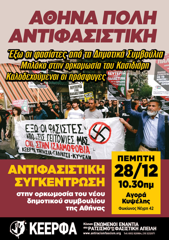 Αντιφασιστική συγκέντρωση στην ορκωμοσία του νέου δημοτικού συμβουλίου της Αθήνας