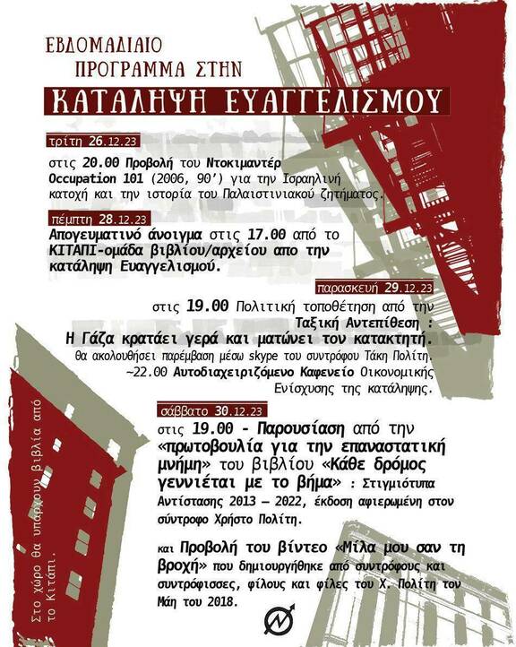 Απογευματινό άνοιγμα απο το Κιτάπι- ομάδα βιβλίου/αρχείου από την κατάληψη Ευαγγελισμού.