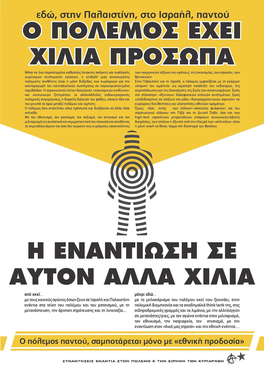 με τους κοινούς αγώνες όσων ζουν σε Ισραήλ και Παλαιστίνη ενάντια στα τείχη του πολέμου και του ρατσισμού, με τη μετανάστευση, την άρνηση στράτευσης και τη λιποταξία...