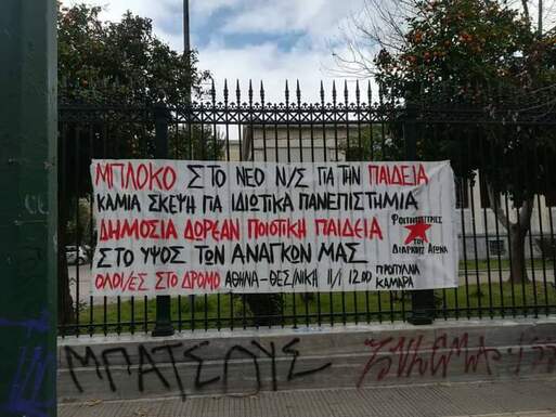 Μέσα από Γενικές Συνελεύσεις, διαδηλώσεις, καταλήψεις, να μπλοκάρουμε το νέο ν/σ για την παιδεία και κάθε επιδίωξη για ίδρυση ιδιωτικών ΑΕΙ.