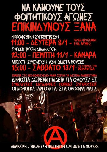 Στηρίζουμε τις συγκεντρώσεις και τα μπλοκ των φοιτητικών συλλόγων την Πέμπτη 11/1 στις 12.00 Προπύλαια και Καμάρα, Αθήνα και Θεσσαλονίκη αντίστοιχα.
