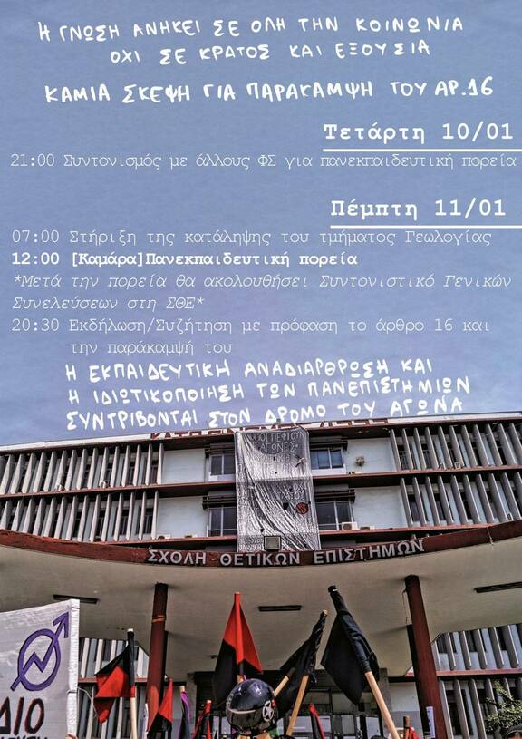 07:00 Στήριξη της κατάληψης του τμήματος Γεωλογίας