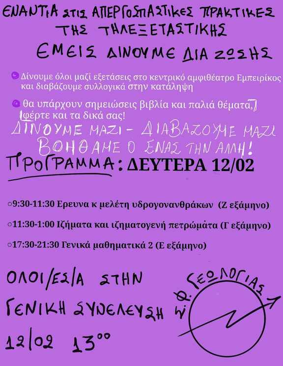 Δίνουμε όλοι μαζί εξετάσεις στο κεντρικό αμφιθέατρο Εμπειρίκου και διαβάζουμε συλλογικά στη κατάληψη